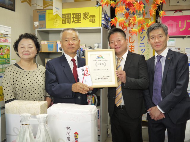 東京都羽村市、JR青梅線の羽村駅から徒歩5分ほどの場所に位置する「生活彩館フジデン」。唐仁原藤夫社長と奥様の美智子さん、ご長男の毅嗣さんの三人が活躍するパナソニックショップである。家電から住まいのリフォームまで、街のでんきやさんならではの力をもつパナソニックショップの優秀店「N&Eハウス」として、10月2日に新たなスタートを切った。