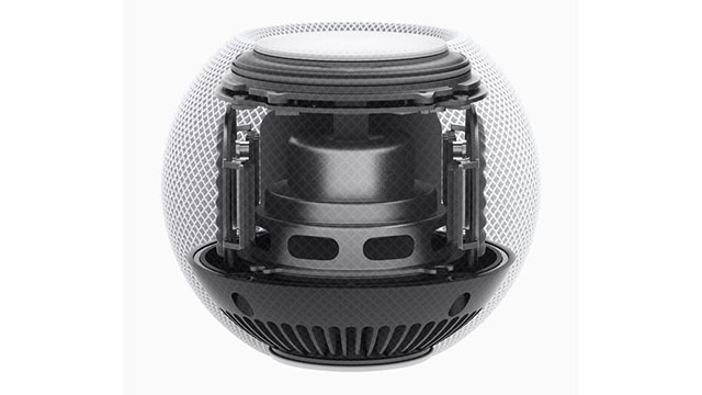 高出力のフルレンジドライバーや一対のパッシブラジエーター、音を底面に導くアコースティックウェーブガイド等の音響設計により、コンパクトな筐体で豊かな360度サウンドを実現。Apple Watch SEにも採用のS5チップを搭載し、コンピュータ解析により再生環境に応じてラウドネス最適化、ダイナミックレンジの調整、ドライバーの制御等を行うという。