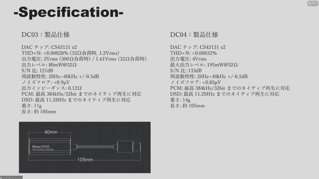 THD+Nは0.00032%/SN比は133dBと、DC03の0.00028%/127dBから向上していることも紹介。また合わせて、前日発表されたDC03の新カラーバリエーションのブラックもアピールした。