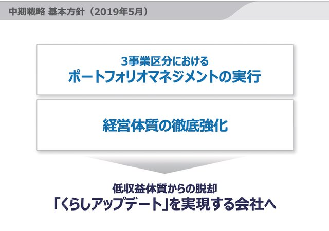 これら4つの事業をグループ発展の中核と位置付ける。さらに、オートモーティブ、ハウジング、スマートライフネットワーク事業については「事業会社としての競争力を磨き、現状抱える課題を克服し、全体の企業価値向上に貢献する」とした。