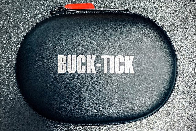限定モデルのデザインは、オリジナルのロゴ、オリジナルカラーを施した特別仕様。なおイヤホンの木目は個体差があるとのこと。キャリングケースにはBUCK-TICKロゴがプリントされている。購入特典として数量限定のオリジナルマイクロファイバークロスも付属する。