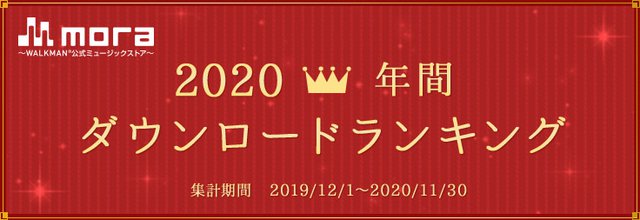 レーベルゲートは、音楽ダウンロードサービス「mora 〜WALKMAN 公式ミュージックストア〜」において、2020年の年間ダウンロードランキングTOP100を発表した。