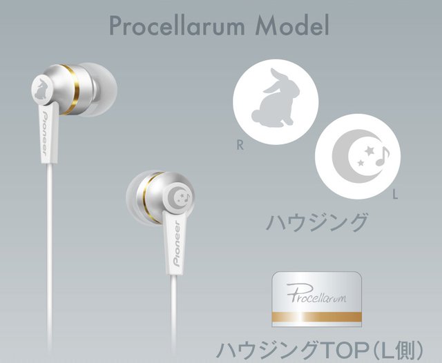 パイオニアの「SE-C7BTSE」をベースに、右ハウジングにはウサギ、左ハウジングには三日月をデザイン。作中のアイドルユニット・Six GravityとProcellarumモチーフの2種類を用意しており、Six Gravityモデルはブラック、Procellarumモデルはホワイトカラーを採用。ゴールドのアクセントがあるハウジング側面近くに各ユニットが彫刻されており、世界観と高級感を演出しているという。