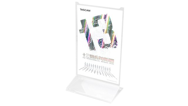 HP-STAND-13SARは、メタリックな箔を贅沢にあしらった高級感あふれるものとなっており、白を基調に機兵とキャラクターのシルエットを印刷。作品を象徴する13の数字とタイトルロゴをホログラムレインボー箔で表面に仕上げたアクリル製ヘッドホンスタンドとなっている。
