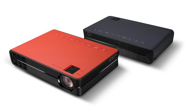 「CX-E1」はHDMI入力のみ、「CX-F1」は無線LANからの投影も可能で、それぞれレッド、ネイビーの2色をラインナップする。価格はいずれもオープンだが、市場想定価格は「CX-F1」が17万円前後、「CX-E1」は15万円前後(いずれも税抜)となっている。
