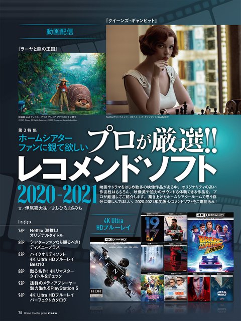 第3特集は「プロが選んだレコメンドソフト2020-2021」です。皆さんも一度は使ったことがある(と思う)動画配信サービス。配信数も万単位と多く、何を観たらいいか迷いませんか? そんな方に女性誌やテレビなどでも活躍中の「よしひろまさみち」さんに、Netflixのお薦めオリジナル作品を紹介してもらいました。また、家族で観るのに最適なディズニープラスの魅力を解説する記事など、コンテンツの情報も満載です。