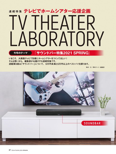 テレビでホームシアターを応援する連続特集「TV THEATER LABORATORY」では、注目のサウンドバーを横並びでレビューしています。5万円という価格を切り口にして合計10機種を横並びでチェックしました。機能の差もありますが、音質にも差があります。オリンピックに向けてテレビの音を強化したい方、ぜひご覧ください。
