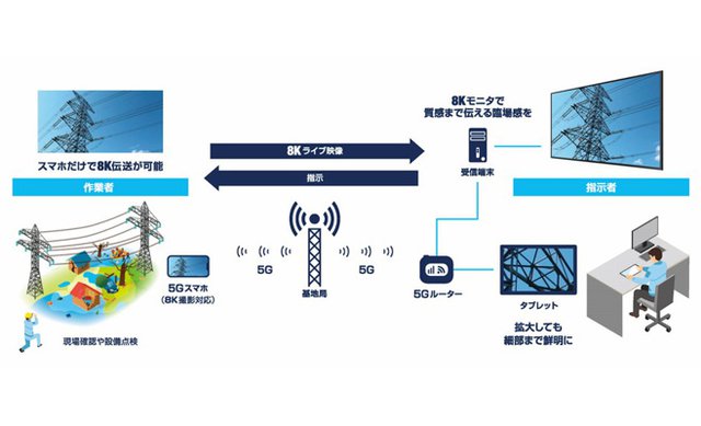 設備点検や製造ラインの作業現場のように、微細な情報のやり取りが必要となるケースでの使用を想定。8K映像の表現力を駆使した遠隔からの支援が可能になるとしている。また、作業者(送信)側はスマホレベルの小型・軽量な機器で実現され、作業者の負担なく、遠隔支援との併用による正確な業務遂行が可能な点もメリットだと説明している。