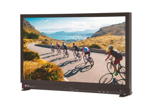 8K入力に対応した8K解像度(7,680×3,840)の液晶モニター。8K番組のロケや中継、スタジオサブや編集室といった映像制作現場での使用を想定する。