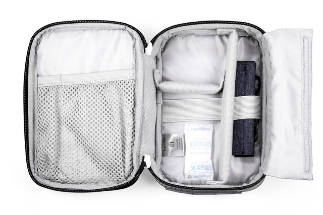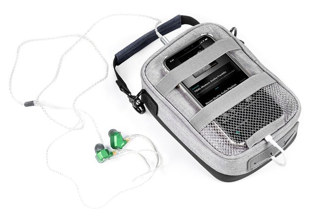 内部には複数のスペースが設けられており、メッシュポケットや固定バンド、着け外し可能なセパレーターなどを備え、ポータブルアンプをはじめアクセサリー類/イヤホンなども同時に収納が可能。フタは180度まで大きく広げることができ、ストレスなく収納や取り出しができるとしている。