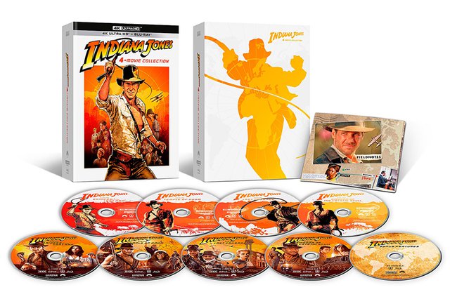 『インディ・ジョーンズ レイダース 失われたアーク《聖櫃》(1981年)』『インディ・ジョーンズ 魔宮の伝説(1984年)』『インディ・ジョーンズ 最後の聖戦(1989年)』『インディ・ジョーンズ クリスタル・スカルの王国(2008年)』の全4作品をまとめた、デジパック仕様のコレクタブル・エディションとして販売される。内容は本編UHDが4枚、本編Blu-rayが4枚、特典Blu-ray1枚の9枚組で、7時間におよぶ映像特典をすべて収録。封入特典として特製マップを同梱する。