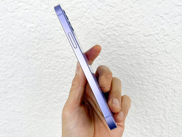 つや消し仕上げのアルミニウム素材をあしらったサイドフレームのメタリック感も上品だと思う。iPhone 12のブラックと並べてみるとパープルの鮮やかさと高級感がさらに引き立つと感じる。