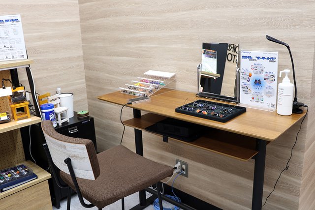 その向かい側にはカスタムIEMの試聴スペースを用意。試聴機には先日発表された“シリーズM/Jのセミカスタム版が用意されており、耳型採取から受け渡しまで本店舗にてワンストップで可能。音アニでオーダーする場合は耳型採取が無料で行えるとのことで、コラボモデルはもちろん、レギュラーモデルのカスタムやセミカスタムも購入可能だ。