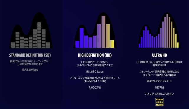 Amazon Music HDでは、7,500万曲以上のロスレス楽曲、700万曲以上のハイレゾ楽曲、ドルビーアトモスやソニーの360RAでミックスされた楽曲を含むイマーシブオーディオをラインナップしている。