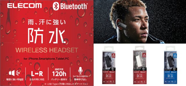 エレコム、IPX5防水搭載の片耳ヘッドセット「LBT-HSC10WP」シリーズ