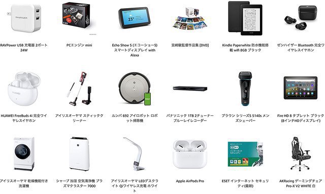 ほかにも「popIn Aladdin2」、LGの4K有機ELテレビ「OLED 55BXPJA」、ルンバの掃除機、パナソニックのレコーダー、ブラウンの電動ひげ剃り、AKRacingのゲーミングチェアなど、多くの人気商品が安くなっている。あらゆるカテゴリーの様々な商品がセール対象となり、日本では、厳選された数十万点の商品がラインナップされる。