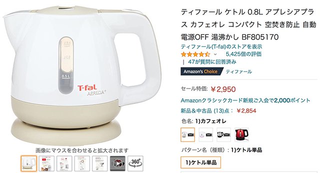 テレワークの機会が増えた編集者Nは、コーヒーをがぶ飲みするのにティファールの電気ケトルを購入。1人ぐらしなので0.8リットルのコンパクトなものだが、約50秒でカップ1杯分を沸騰できるというスピード感に惹かれた。省スペースなのも選んだポイントだ。