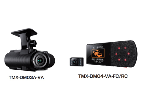 前方視界を妨げないコンパクトなデザインの1カメラタイプの「TMX-DM04-VA」、前方カメラと車室/後方カメラ搭載の「TMX-DM04-VA-FC/RC」は、音や画面表示に加え、LEDの光で直感的に知らせる検知機能を装備。