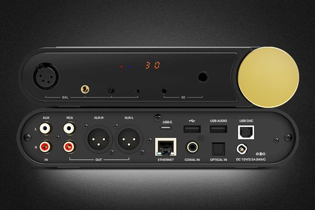 外径寸法は213×50×258mmで、質量は3kg。3.5mm-6.3mmまでのヘッドホン端子やXLR/RCA出力、LANポート、光/同軸デジタル入力などさまざまなアナログ・デジタル接続インターフェイスを備えるうえ、バッテリー駆動なのでさまざまな機器・シチュエーションに対応できるとのこと。