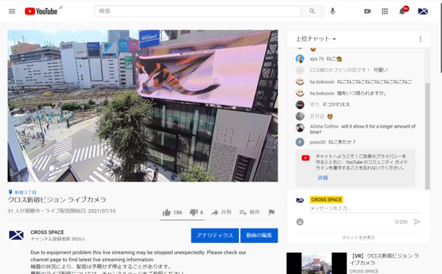 「巨大猫」の3D動画放映がインターネットなどで話題になっている『クロス新宿ビジョン』は、本日7月12日より本放映を開始した。