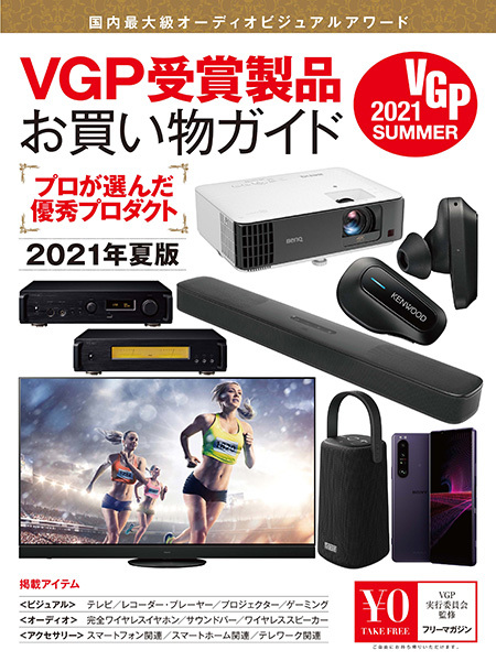 国内最大級を誇るオーディオビジュアル機器の総合アワード「VGP2021 SUMMER」。その受賞結果が発表されるフリーマガジン「VGP受賞製品お買い物ガイド VGP2021 SUMMER」が、ヨドバシカメラ、ビックカメラなどの全国量販店で本日7月15日より順次配布開始されます。
