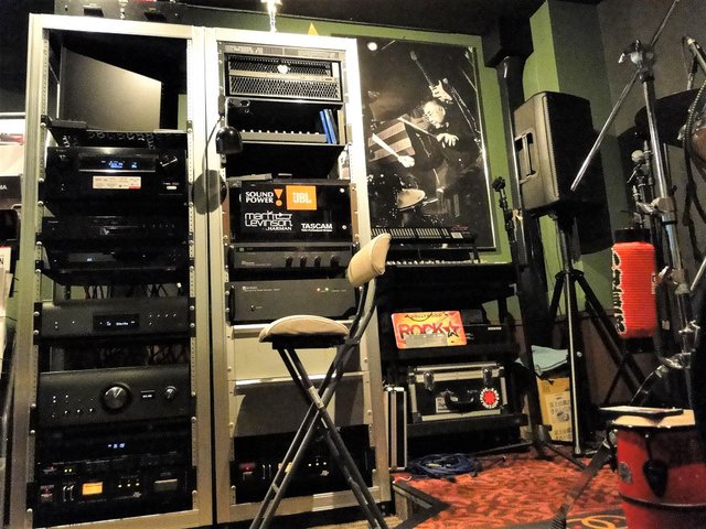 さらに「内装や照明もワクワクしてもらいたい」とインテリアには腰壁やグリーンの黒板、ブラックのオトテン、LED間接照明をコーディネート。機材もマウントラックで積み上げて、ロサンゼルスのカスタムインストールショップさながらの雰囲気を醸し出す。「やりたいことは全部やろう」と実現させた“HARD ROCK THEATER”だ。なお、対面にはバンドステージが設けられている。