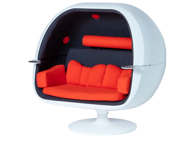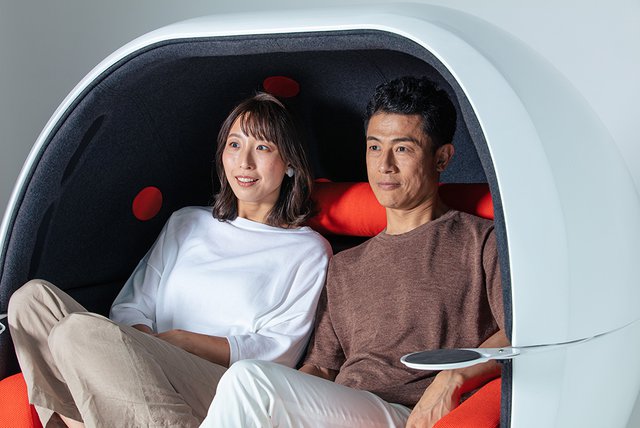「VRS-W1」は、 2018年5月に販売を開始した一人掛けチェアスピーカー「VRS-1」をベースにしており、新たに二人掛けが可能なデザインとなっている。スピーカー数は14個(8Ω×14)で、11.2ch再生に対応。身体に近いスピーカーと硬質シェル構造による雑音カットで、小さな音でも十分な音量感が得られるため周囲を気にせずに作品に没入できるとしている。