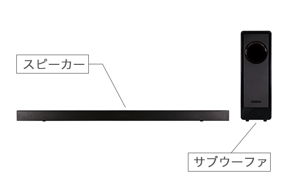 サウンドバーの出力は20W×2で、サブウーファーは60W。Bluetooth 5.0にも対応する。サウンドバーの外形寸法は1,000×75×53mmで、質量は約1.5kg。またサブウーファーの外形寸法は145×310×425mmで、質量は約4.2kgとなる。