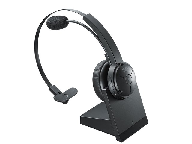 サンワサプライ、本体重量約80gの片耳Bluetoothヘッドセット。充電クレードルを同梱
