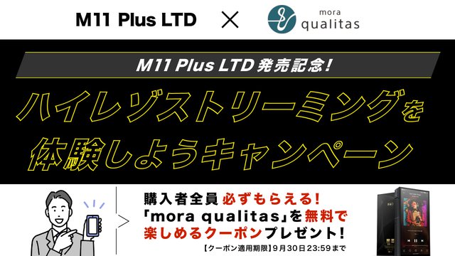 また発売を記念して、M11Plus LTDを購入するとハイレゾストリーミングサービス「mora qualitas」を30日間無料で体験できるキャンペーンが開催される。