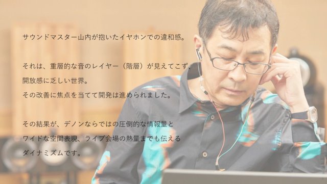 「デノンならではのサウンドクオリティを完全ワイヤレスイヤホンでも展開したい」をコンセプトとした製品で、同社サウンドマスターの山内氏が音決めを担当。Hi-Fiコンポーネントと同様に「Vivid&Spacious」な音を目指し、山内氏が市場のイヤホンに感じていた重層感の見えづらさ、開放感の乏しさの改善に焦点を当てて開発したという。