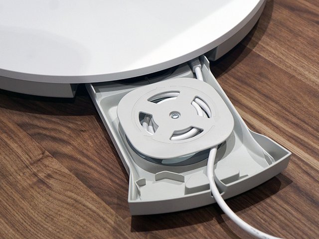 本体色は白を基調にすることで、リビングに溶け込むデザインとなるよう配慮。部屋の真ん中に置いても空間にフィットするよう、背面の質感やコード収納部にまでこだわったデザインにしているという。