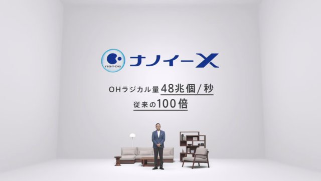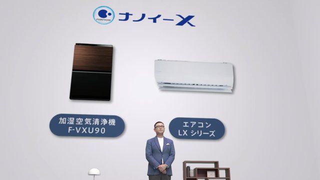 独自のクリーンテクノロジーデバイス「ナノイーX」が進化、「新ナノイーX」として、OHラジカル量が従来の100倍にあたる48兆個/秒生成されるといい、カビ菌や花粉の抑制や脱臭がよりスピーディになったという。「新ナノイーX」は9月発売の加湿空気清浄機、11月発売のエアコンLXシリーズに新搭載されている。