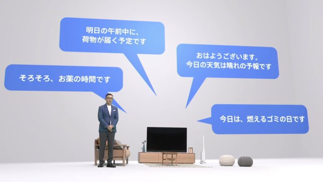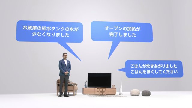 そのひとつは、うっかり忘れてしまいがちなことを先回りして、テレビ、プライベートビエラ、ロボット掃除機の音声でお知らせするサービス。音声をきっかけに家族が協力して家事をする暮らしを生み出すイメージ。サービスはこの秋より開始され、ヤマト運輸の宅配のお知らせサービスについては2022年春スタート予定で協業を進めているとのこと。サービス対応家電を順次増やし、外部連携も拡大するという。