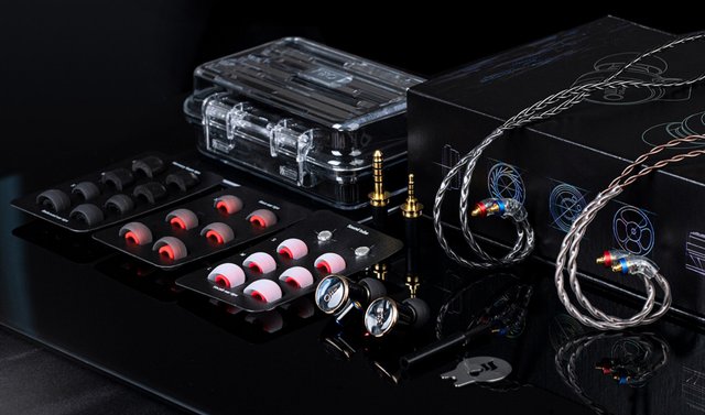 付属品として、「バランス重視」「低音重視」「ボーカル重視」の3種類のイヤーチップをS/M/Lで用意。そのほか、フォームイヤーチップを2ペア、交換用音導管を1ペア、クリーニングブラシ、キャリングケースなどを同梱する。