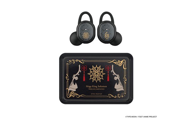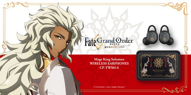 本機は完全ワイヤレス「CP-TWS01A」をベースに、左右のハウジングプレートと本体充電ケースを、作中キャラ「魔術王ソロモン」をイメージしたオリジナルデザインに仕上げたコラボレーションモデル。製品パッケージのデザインは描き下ろしイラストとなっており、また「ちりめん風生地」を使用した付属の巾着ポーチは、シンプルで使いやすいデザインだとしている。