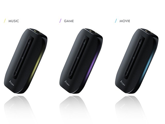 「MUSIC」「MOVIE」「GAME」と使用シーンにあわせた3つのモードを搭載するポータブルDAC。本体中央部に備えられたボタンを長押しすることで切り替えが可能となっている。なお、筐体側面には現在選択しているモードを判別するLED表示機能が備えられている。