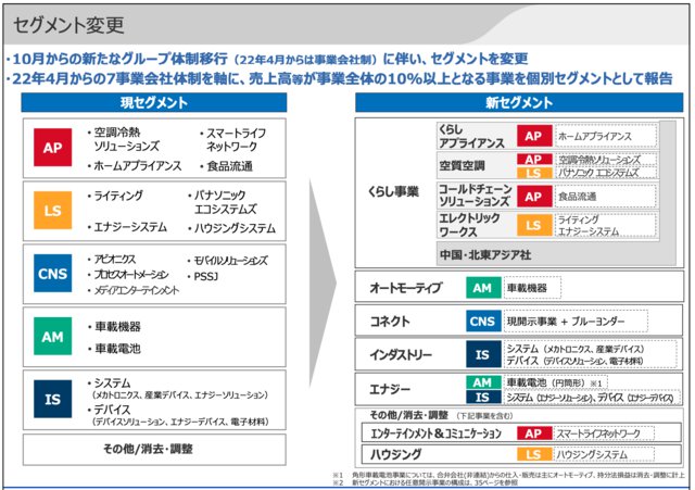 さらに、この10月からの新体制発足に伴うセグメント変更について説明。変更内容は下図の通りである。