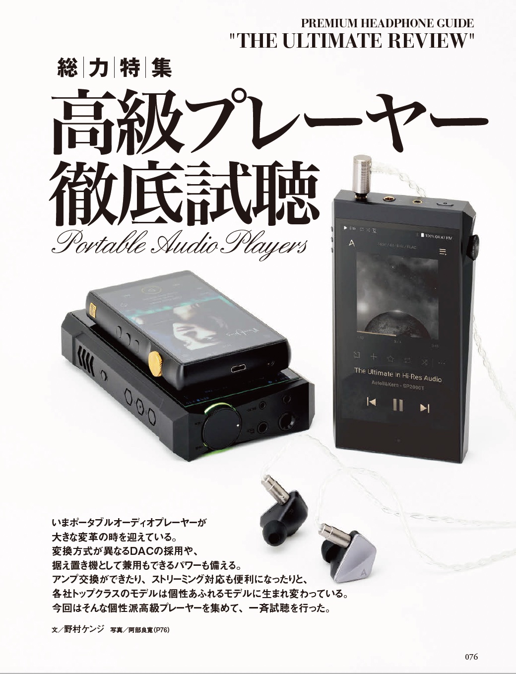 また、特集記事では、野村ケンジ先生による高級オーディオプレーヤーの徹底比較試聴(アルティメット・テスト)を実施しています。こちらは下記のようなモデルたちに加えて、注目のポータブルDACもコラムで取り上げています。