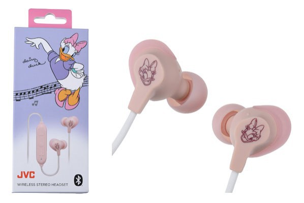 HA-FX28W-EA/EPはBluetoothイヤホン「HA-FX28W」をベースとし、カラーはドナルドダックデザインがブルー、デイジーダックデザインがピンクを採用。柔らかなエアクッションでソフトな装着感と安定したフィット感を両立するとともに、高磁力ネオジウムマグネット採用ドライバーによるパワフル&クリアなサウンドを特徴とする。