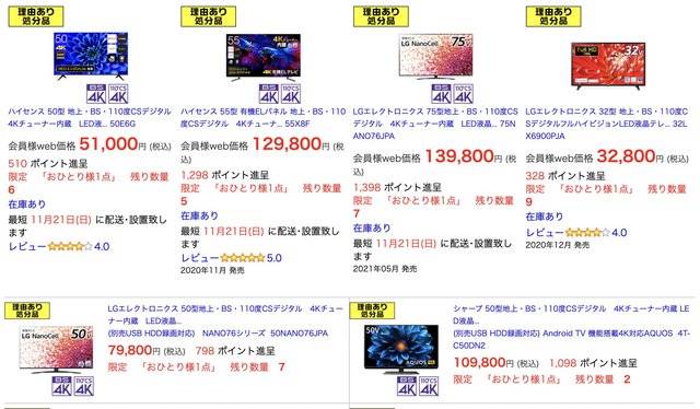 大型テレビも安く