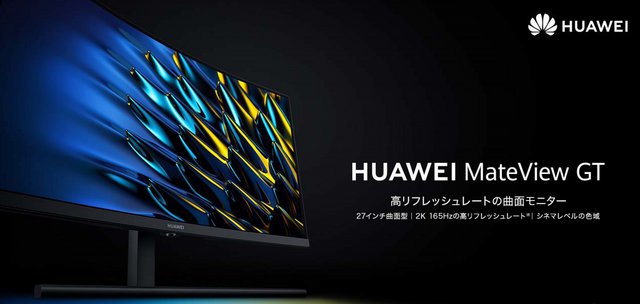 ファーウェイ・ジャパンは、液晶ディスプレイ「Mate View GT」の新モデル「Mate View GT スタンダードエディション」の27型を11月25日、34型を12月3日より発売する。価格はオープンだが、27型が49,980円、34型が62,800円前後での実売が予想される(表記全て税込)。