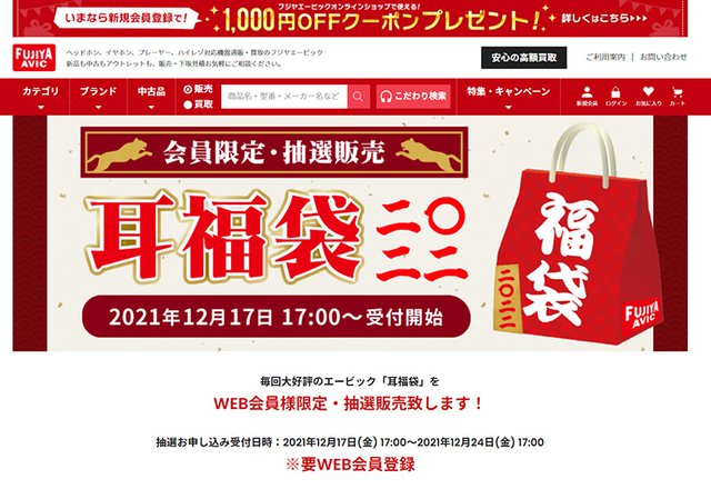フジヤエービック、「耳福袋2022」抽選販売。12/24 17時まで申込受付