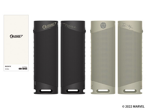 SRS-XB23 Tony Stark Collectionは、ワイヤレスポータブルスピーカー「SRS-XB23」を ベースとした製品。水深1mに最大30分間沈めても浸水しないIPX7相当の防水性能、IP6X相当の防塵性能、および防錆性能を備え、コンパクトながら高音質の広がりや高い音圧、力強い低音を楽しめるとしている。