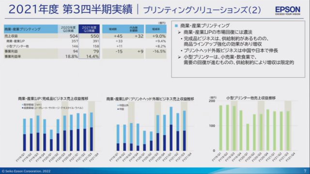 セイコーエプソンは、2021年度第三四半期の決算発表を行った。