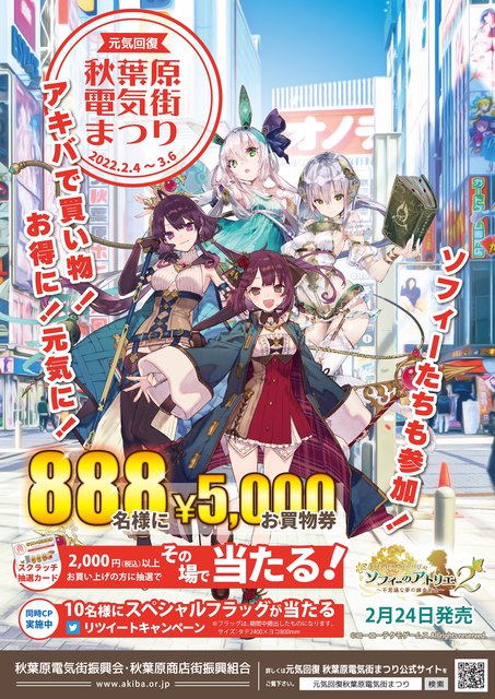 本イベントは、2022年2月発売のコーエーテクモゲームス社のゲームソフト『ソフィーのアトリエ2』とタイアップ。同タイトルに登場するキャラクターをデザインした販促ツールの展開にも注目だ。
