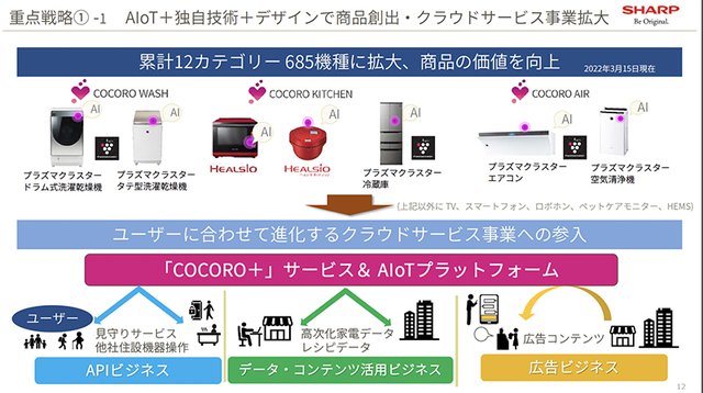 シャープでは、こういったAIoT対応製品をはじめとする白物家電などを軸とした「スマートライフ」事業を、同社のコアであるブランド事業の一つとして位置付けて力を注いでいる。