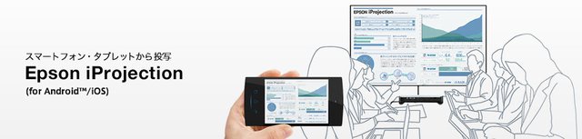 「Epson iProjection」は、エプソン製の無線LAN対応プロジェクターに、手持ちのiOSまたはAndroidスマホやタブレットをワイヤレスに接続して、スマホやタブレットの写真やファイル、Webサイトをプロジェクターから投写するアプリ。