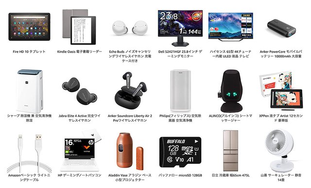 特設ページには、今回のタイムセール祭りでお得になる商品の一部が紹介されている。毎回人気のAmazonデバイスでは、Fire HD 10タブレットや完全ワイヤレスイヤホン「Echo Buds」、Kindle Oasisなどが安くなる。さらにAnkerからは、モバイルバッテリーや完全ワイヤレスイヤホン「Soundcore Liberty Air 2 Pro」などがセール対象となる。