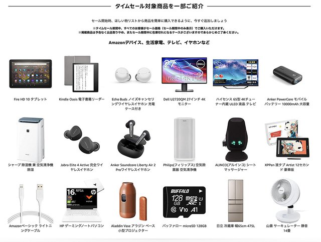 タイムセール祭りはあらゆる商品が対象となる、大型家電などの高額アイテムが安く手に入れられるだけでなく、日用品などの生活必需品も多数ラインナップしているので、そうした商品をまとめ買いする際にも活用できる。